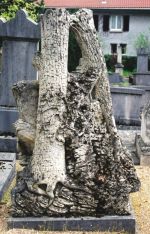 In de verordening van veel natuurbegraafplaatsen staat dat er geen traditionele grafsteen als grafteken op een graf mag worden geplaatst, maar dat het graf alleen gemarkeerd mag worden met vergankelijk materiaal. En dat blijkt heel vaak te bestaan uit een houten plak ofwel boomschijf. En zo zijn we weer terug bij een simpele grafaanduiding: van plank naar plak.